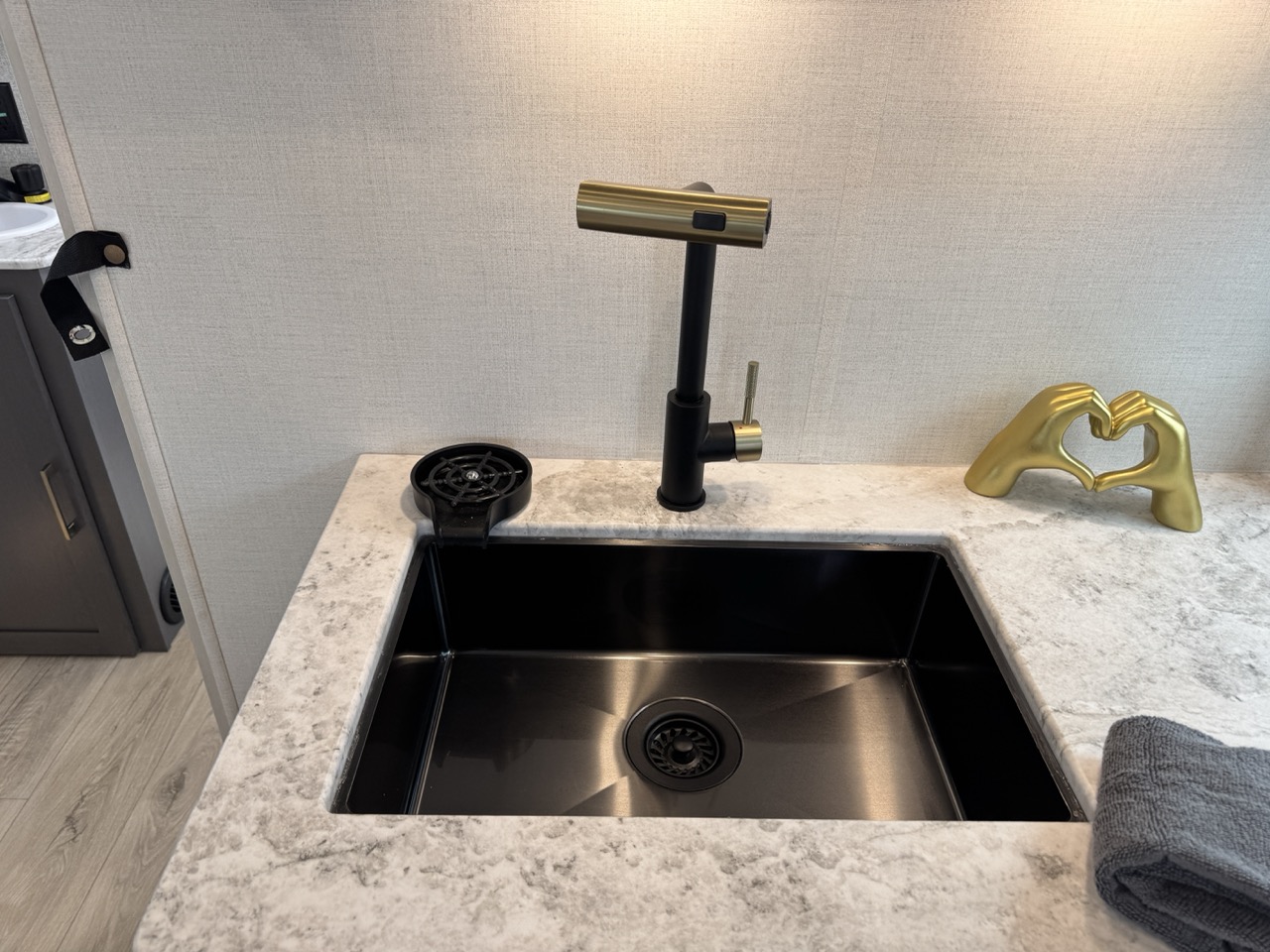 Spacious kitchen with large sink and cup washer