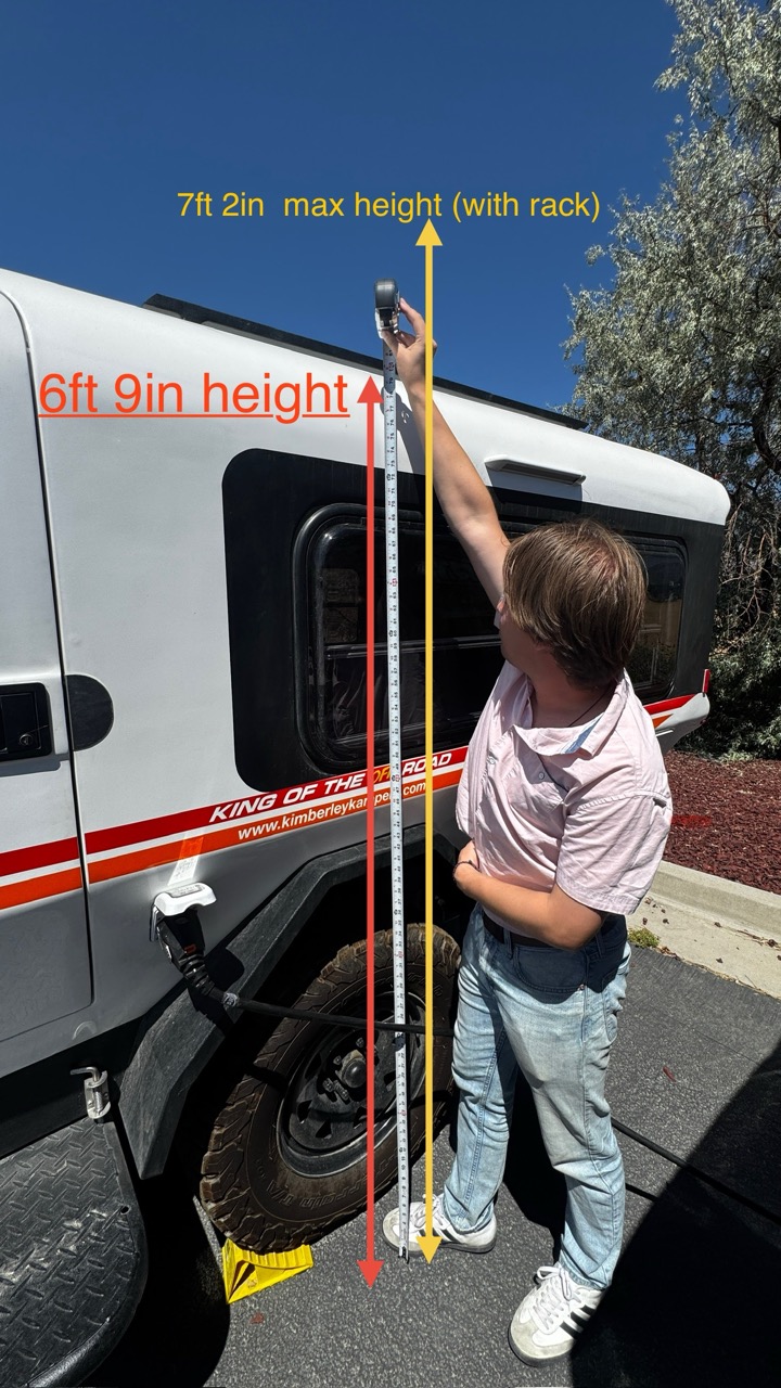 min height 6 ft 9 in (could lower a few inches if tires are deflated and air bags empty)